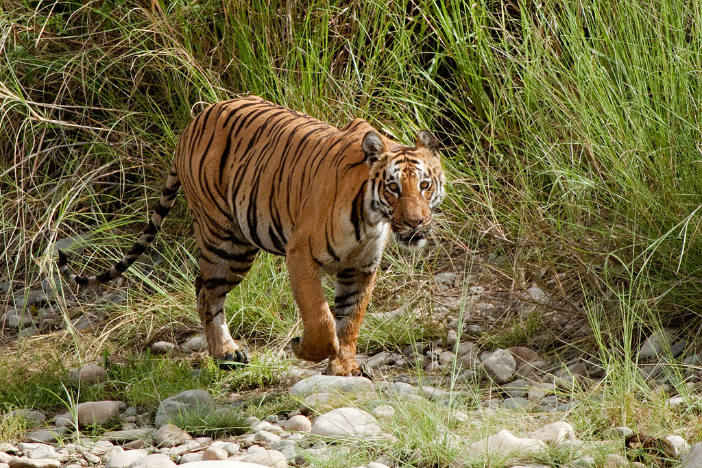 Dhikala forest rest house is located in the heart of Corbett national park on the bank on ramganga reservoir. From deck of Dhikala forest rest house one can enjoy commanding view of Ramganga reservoir while in summers when water line recedes if lucky enough herds of elephants can be seen grazing in flood plains of Ramganga. Recently on instagram one of person has shared his experience of spotting tiger right from room of dhikala rest house which went viral. Dhikala forest lodge is managed by forest department of Corbett National Park. From room inventory and area perspective Dhikala forest rest house is largest forest rest house inside corbett tiger reserve. Picturesque location and beautiful surroundings make it an ideal place to stay away from the hustle bustle of city life. Dhikala forest rest house is the only forest rest house within the Corbett Tiger Reserve which provides the facility of electricity within the rooms and thus is ideally suited for families. In order to reach Dhikala rest house, one has to enter the Corbett National Park via Dhangarhi gate. Dhikala is named after the huge grassland known as dhikala chaur, which is one of the major attractions of Dhikala zone.